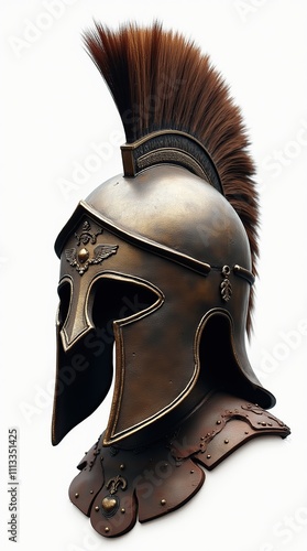 © vitanovski, Fototapeta premium Ancient Carthaginian Warrior Helmet on Display Against White Background