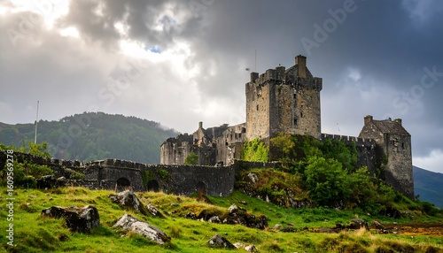 © David, Fototapeta premium Ancient castle on a grassy hill