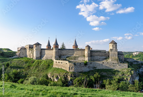 © kurtov, Fototapeta premium ancient castle on the mountain, with a beautiful sky, in sunny weather