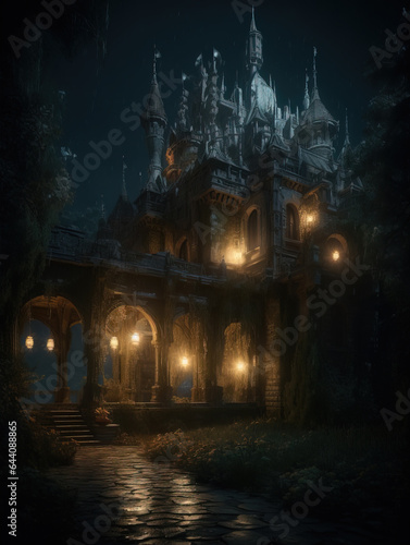 Fototapeta premium Ancient Castle Under Moonlight,created with generative ai tecnology.