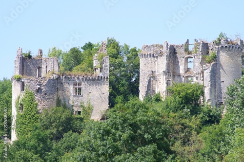 © Christophe, Fototapeta premium Ancient castle walls ruins scene. Ruined wall castle. Fortress wall ruins