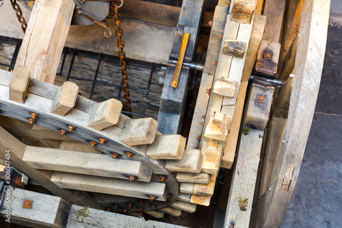 Obraz premium Ancient castle, wooden well gears, old Europe