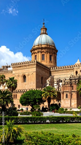 © vas, Obraz premium Ancient cathedral, lush gardens