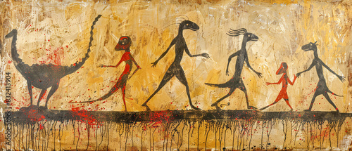 Fototapeta premium Ancient Cave Art Depicting Alien-like Figures Intricate Rock Paintings...