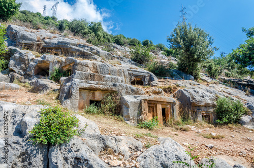 Fototapeta premium Ancient cemetery in the city of Limyra, Turkey. The entrance to the old...