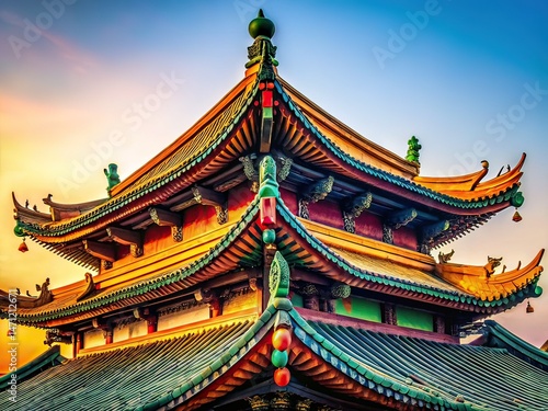 Fototapeta premium Ancient Chinese Roof Silhouette, Architectural Photography, Rooftop Design,...