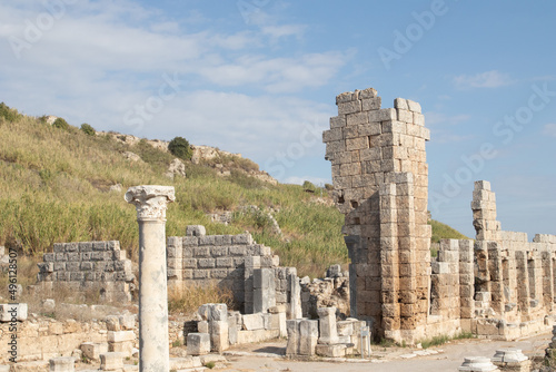 Fototapeta premium Ancient city of Perge. Remnants of ancient Roman civilization.