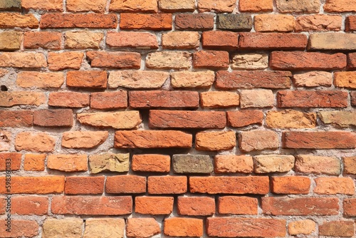 Fototapeta premium Ancient city wall made with old red bricks
