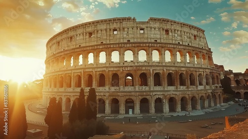 Obraz premium ancient colosseum in rome illuminated by warm morning sun iconic italian landmark travel destination
