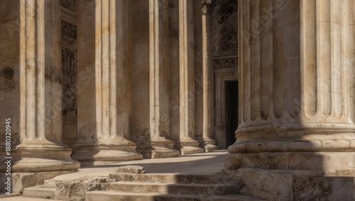 © nurdesign99, Fototapeta premium Ancient columns, sunlit hall, weathered stone