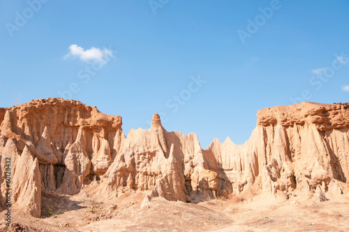 Obraz premium ancient corrosion of soil by rain and wind at Kork Suo,Nan,Thail