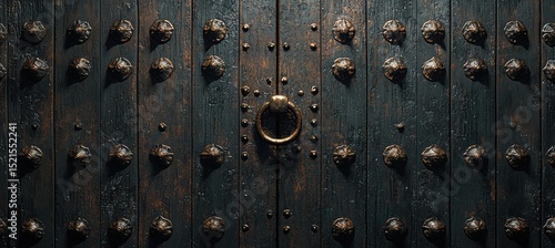 © Adam, Fototapeta premium Ancient dark wooden door with intricate carvings in autumn setting