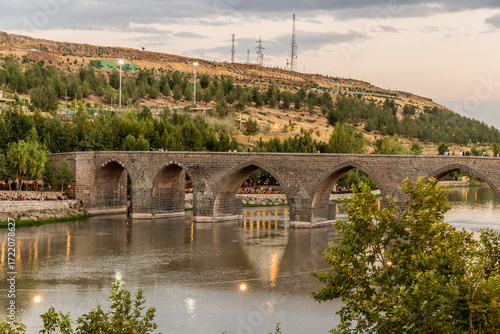 Naklejka premium Ancient Dicle Bridge over Tigris river near Diyarbakir, Turkey
