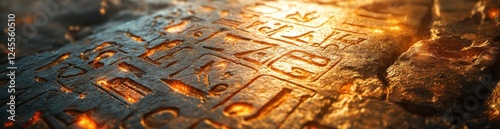 Naklejka premium Ancient Egyptian Hieroglyphs on Stone Tablet Signifying History and Culture