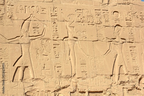 Fototapeta premium Ancient egyptian hieroglyphs on the wall of karnak temple in Luxor, Egypt.