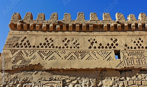 Obraz premium Ancient fortress wall adorned with intricate geometric patterns.