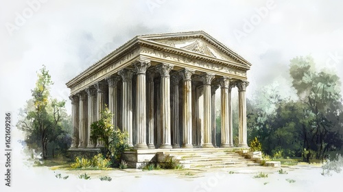© Magnetix Art, Obraz premium Ancient Grecian Temple Architecture Watercolor Painting