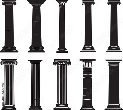 Obraz premium Ancient Greek Columns Silhouette Vector Illustrations