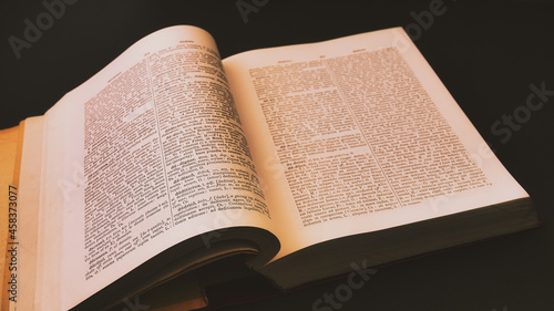 Fototapeta premium Ancient Greek, Latin Dictionary with soft yellow dramatic light, Education,...