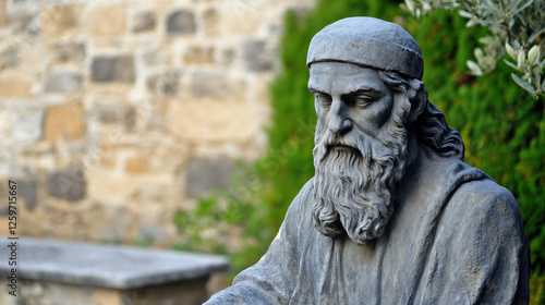 Fototapeta premium Ancient Greek Man Statue with Detailed Face and Beard Features