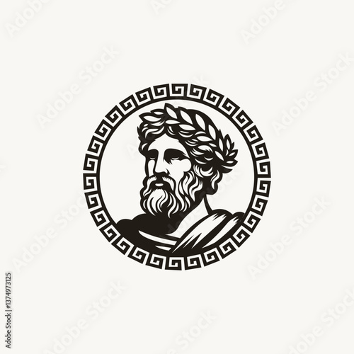 Obraz premium ancient greek philosopher with wreath and greeks border logo design