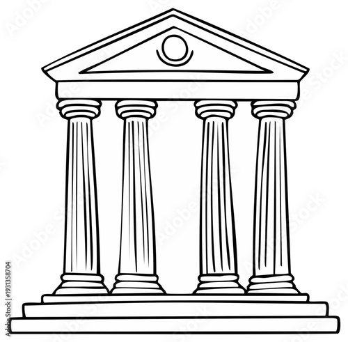 © Тарас Тырса, Obraz premium Ancient Greek Roman temple building with pillars vector line art illustration