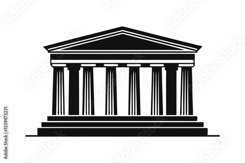 © Pinak, Obraz premium ancient greek temple line art silhouette vector illustration