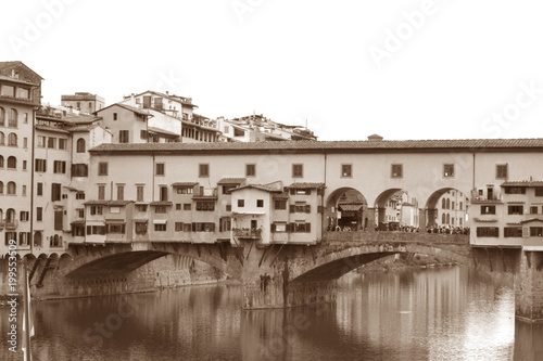 Fototapeta premium Ancient image of the Arno River and the Ponte Vecchio in Florence 001