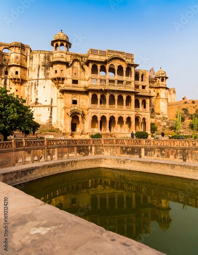 © Abdui, Fototapeta premium Ancient Indian palace by a pool