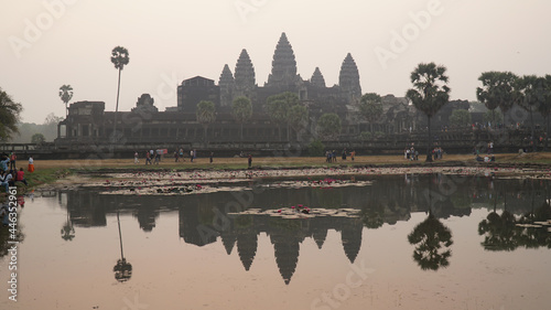 Naklejka premium Ancient Khmer Empire temples in Angkor Wat during sunset.