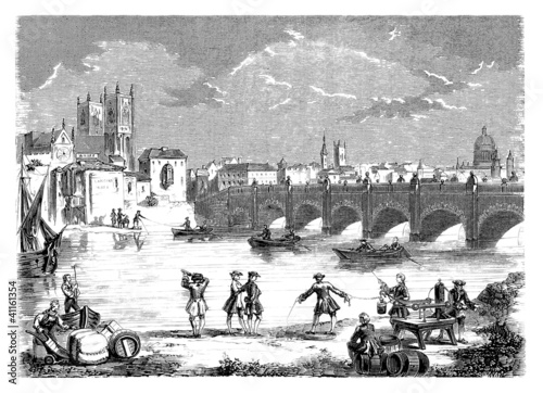 © Erica Guilane-Nachez, Fototapeta premium Ancient London Bridge - 18th century