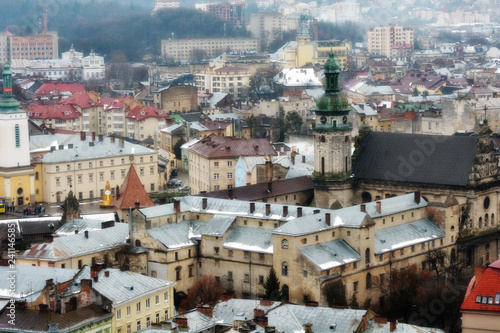 © lastfurianec, Fototapeta premium Ancient Lviv view from height. Nice view of the ancient city, a tourist place.