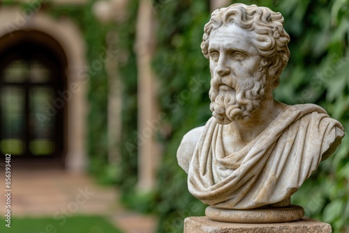 © Balaraw, Fototapeta premium ancient marble bust statue in a garden