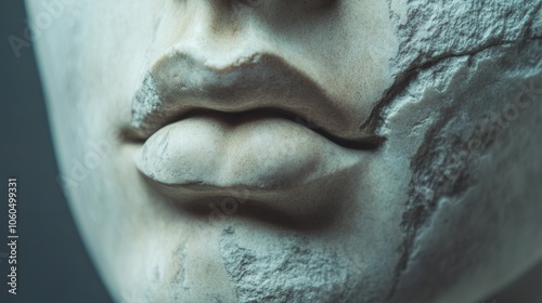 Fototapeta premium Ancient marble head of a figure with detailed carving. A timeless masterpiece.