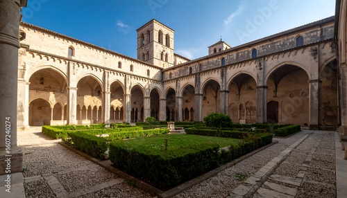 © Aku, Fototapeta premium Ancient monastery courtyard under a clear sky