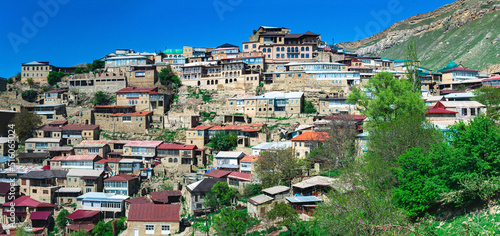 © Evgeny, Naklejka premium ancient mountain village Chokh over rocky valley in Dagestan