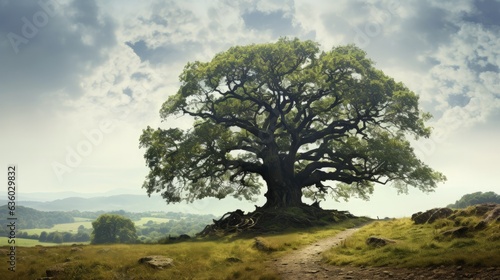 © HN Works, Obraz premium Ancient oak tree in the town. silhouette concept