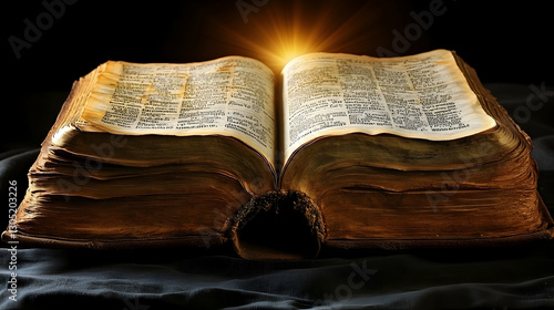 © hudan, Obraz premium Ancient open Bible illuminated