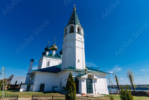 © alexkoral, Obraz premium Ancient Orthodox Christian white stone Church in Russia on the banks of the Volga river