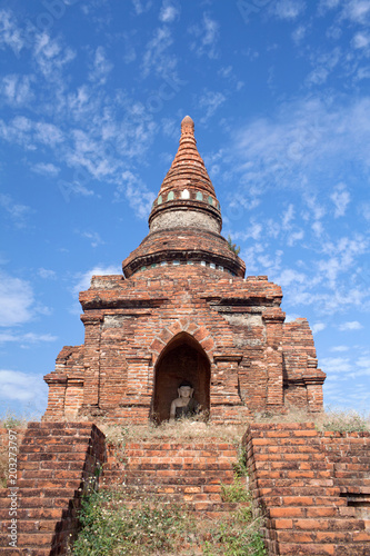 Fototapeta premium Ancient pagoda with Buddha statue inside in Bagan, Mandalay Division, Myanmar