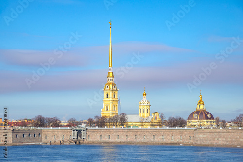 Obraz premium Ancient Peter and Paul Fortress in the early spring morning. Saint Petersburg, Russia