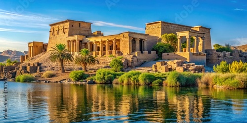 Fototapeta premium Ancient Philae temple complex on an island in the Nile River, Egypt, ancient,...