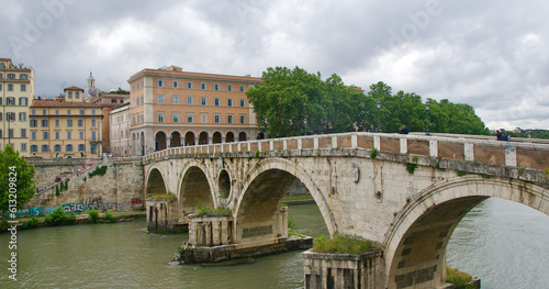 © bleung, Obraz premium Ancient Ponte Sisto bridge standing over Tiber River in Rome, Italy