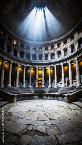 © Adrian Grosu, Obraz premium Ancient roman circular platform surrounded by columns