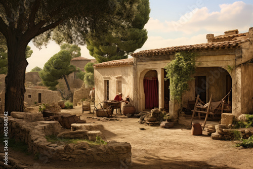 © thejokercze, Naklejka premium Ancient Roman life with Roman villa