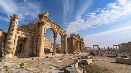 © Mbk, Fototapeta premium Ancient Roman ruins under a vibrant blue sky.