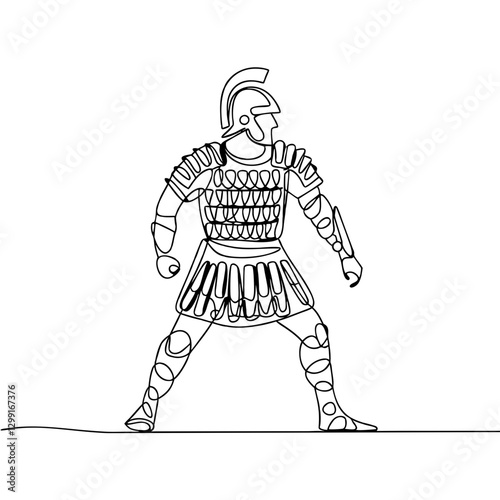 © Kiss, Obraz premium Ancient Roman Warrior in Armor Line Art Illustration for Historical Education