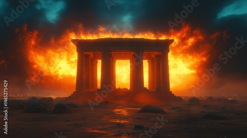 Fototapeta premium Ancient ruins ablaze