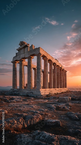 © Wida, Obraz premium Ancient ruins at sunset against a dramatic sky.