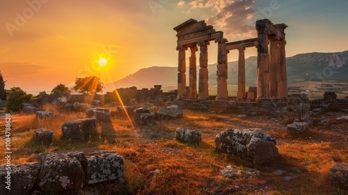 Fototapeta premium Ancient ruins at sunset, showcasing historical and archaeological beauty